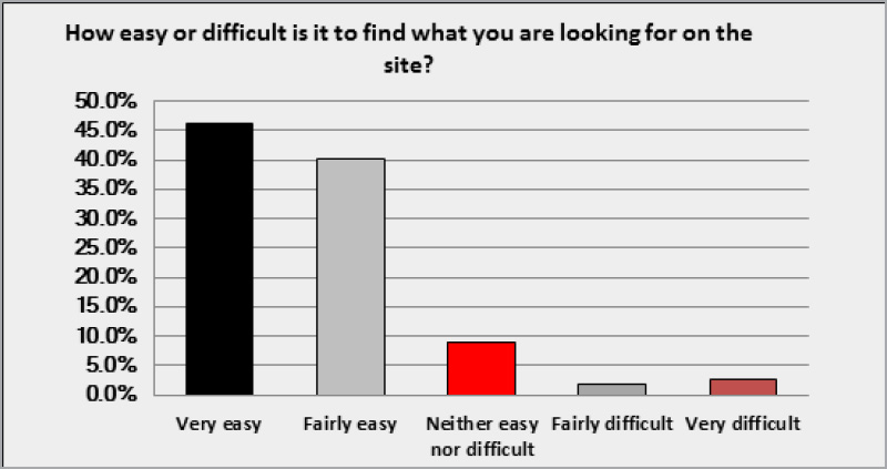 We were pleased to see that 87% of respondents found it either very easy or fairly easy to find what they were looking for. It was always our aim to make the navigation and menus intuitive and user friendly.